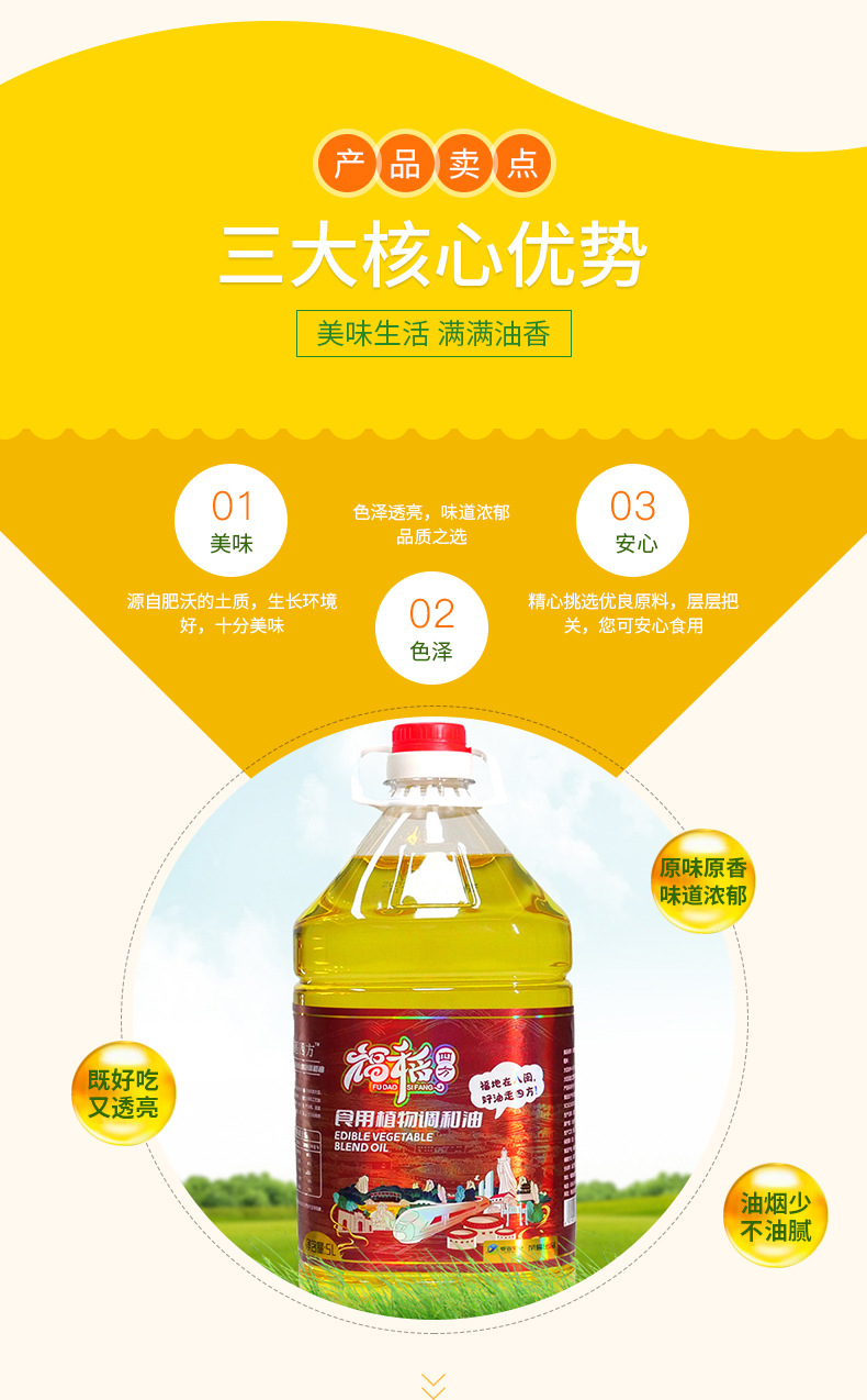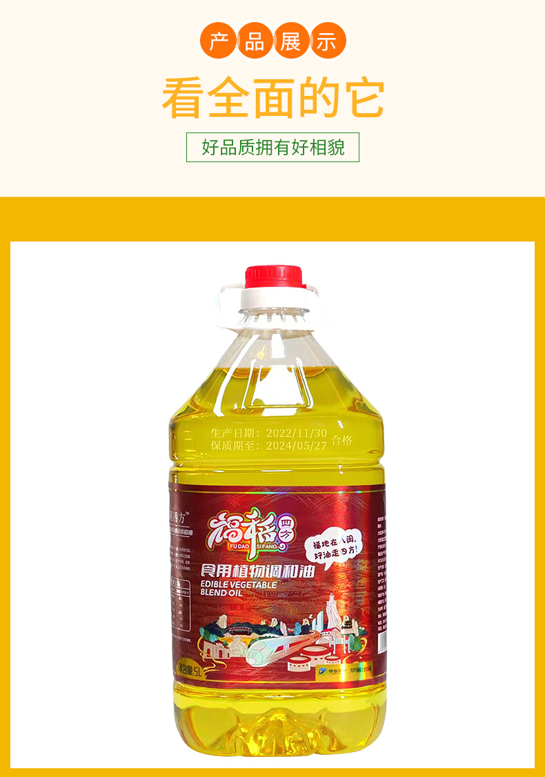 厂家定制福稻四方大豆食用植物调和油5L瓶装物理压榨植物油食用油