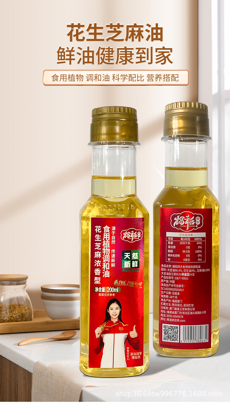 福稻四方花生芝麻香型食用植物调和油 200ML官方直售家用烹饪炒菜